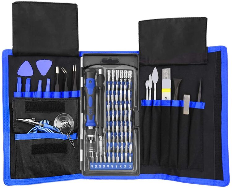 The first step was the hardest one - waiting for parts to come in the mail. Due to the wonderful joys of Amazon prime shipping, the first item to arrive was my M.2 to SATA adapter. It actually came with 5 SATA cables, so it turns out I didn’t need to order those from Newegg. My order had already shipped, and you can never have too many spare cables sitting in a drawer unused. My cheapie SSD came in a padded envelope - I love how durable SSDs are compared to HDDs. Then it was the week-long wait while the Newegg order shipped from the warehouse in California to South Carolina. As much as I dislike that Amazon is the mega-corp that it is, the Prime shipping experience is just so nice. The day finally came, and I recruited some help to carry all the boxes from the BJU post office to my dorm room. The biggest box was the case - even though it’s a mITX case, it still came packaged very securely in thick hard foam. The five Seagate Expansion drives would be an exciting project. My friend Elias, a computer science major, helped me with the HDD shucking process. I used this fancy toolkit my parents got me for Christmas: