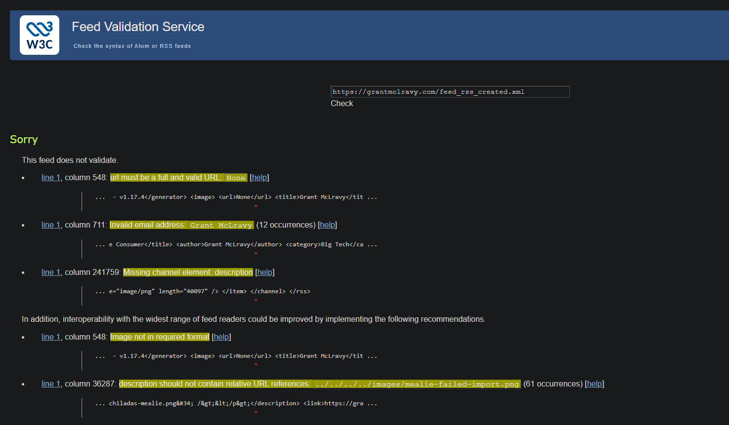 There was a button to check the validity of the feed, and several things failed the feed validation: