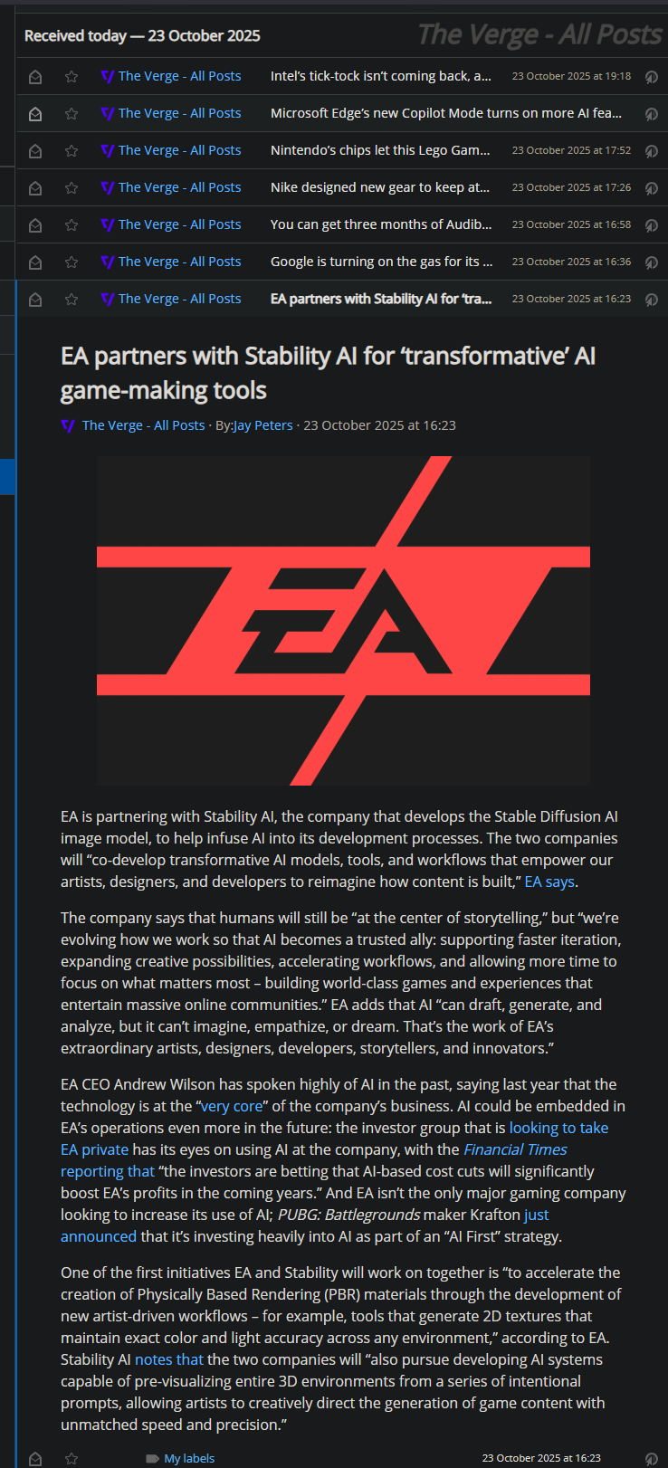 Just like modern day venture capital throws money at anything AI, once upon a time "New Media" was the new hotness. Early on, during the "build fast and find a way to make money later" era, web publications would gladly give away their content freely to get more readership. Later, during the "turn this money furnace into a sustainable company" era - aka "enshittification" - these feeds were stripped back into just a short summary with a link to the ad-infested article.